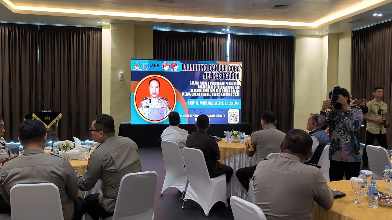 Aplikasi Gerakan Arsip & Reporting Data Narkoba (Garda) resmi diuji coba dan diluncurkan di Gedung Presisi Mapolda Sumsel, Rabu 26 November 2025.-MulyadI-PALTV