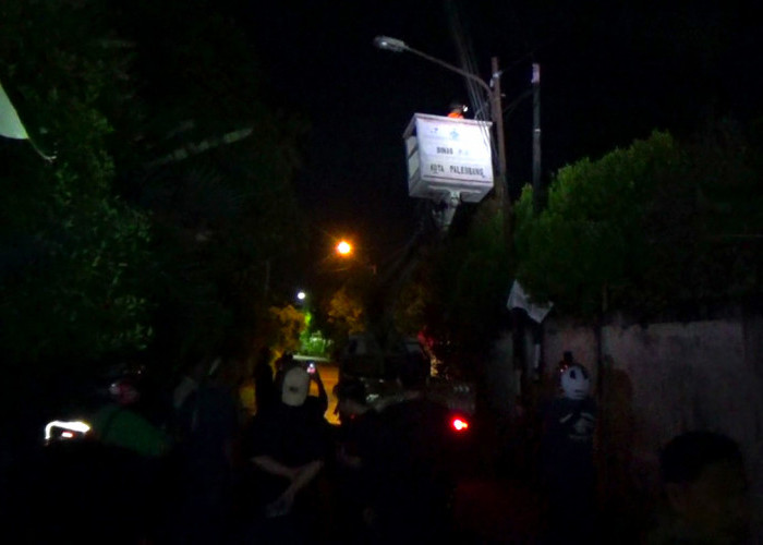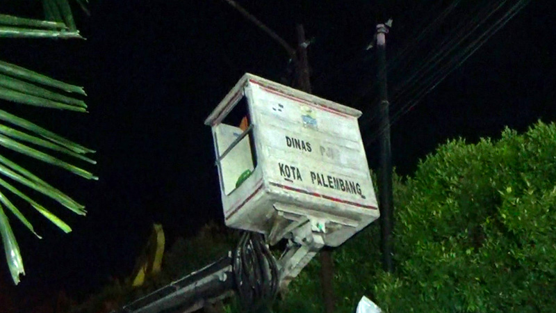 Perbaikan Penerangan Jalan Utama (PJU) di kota Palembang terkendala cuaca hujan yang membuat petugas tak berani melakukan penggantian lampu.-Sandy Pratama-PALTV