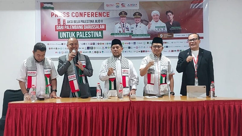 PALEMBANG, PALTV.CO.ID - Suasana hangat penuh semangat kepedulian terhadap saudara-saudara di Palestina terasa dalam acara Konferensi Pers “Aksi Bela Palestina Jilid V: Dari Palembang Darussalam untuk Palestina”.