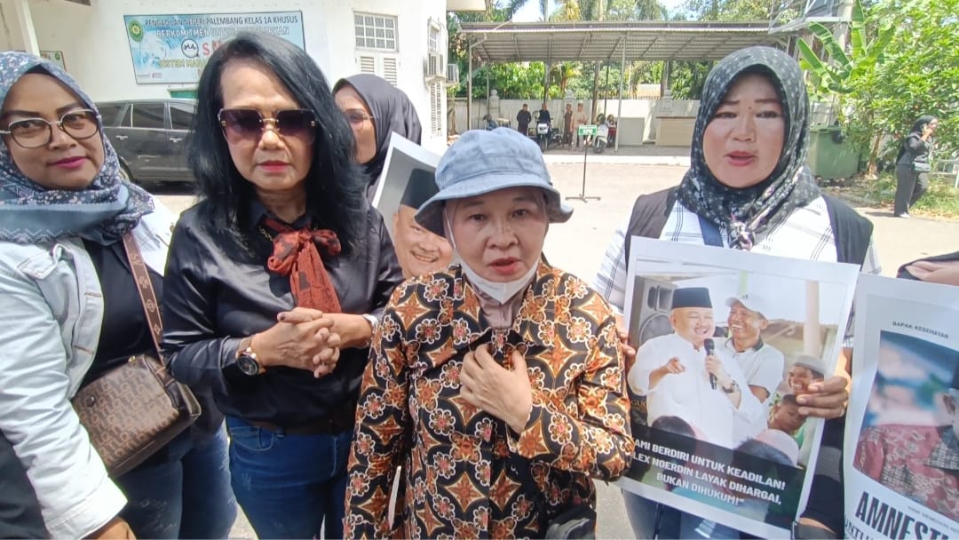 Emak-emak Suarakan Dukung Mantan Gubernur Sumsel Alex Noerdin Usai Sidang Perdana Korupsi Pasar Cinde
