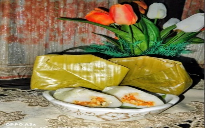 Kue ini termasuk jenis kudapan basah, mirip seperti lemper atau dadar isi, namun memiliki tekstur lebih lembut dan aroma khas daun pisang yang menggugah selera.
