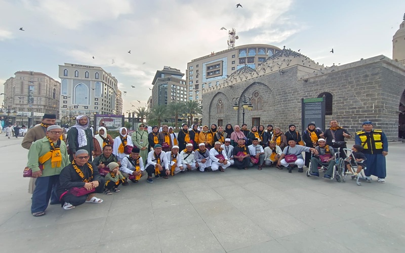 Dipandu oleh para muthawwif berpengalaman, rombongan jemaah melakukan kunjungan ke sejumlah tempat bersejarah di sekitar Masjid Nabawi.