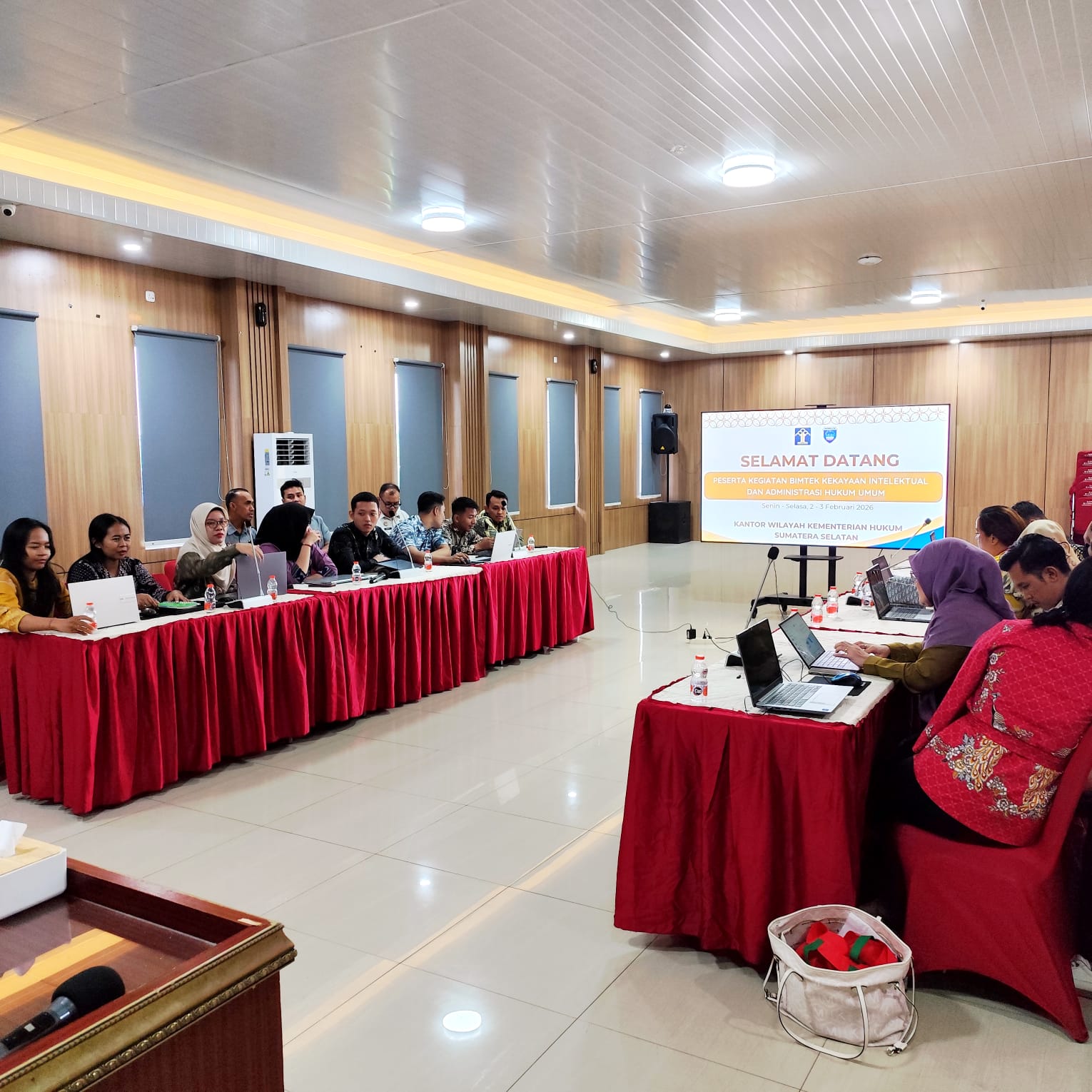 PALEMBANG, PALTV.CO.ID- Kantor Wilayah Kementerian Hukum Sumatera Selatan menerima permohonan Bimbingan Teknis (Bimtek) Kekayaan Intelektual (KI) dan Administrasi Hukum Umum (AHU) dari Bapperida OKU Timur pada hari ini Selasa (03/02), bertempat di Aula Musi Lantai 3 Kantor Wilayah Kementerian Hukum Sumatera Selatan.