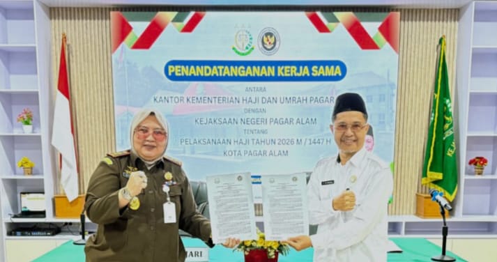 PAGAR ALAM, PALTV.CO.ID- Kejaksaan Negeri PAGAR ALAM memperkuat komitmen pengawasan penyelenggaraan ibadah haji tahun 2026 melalui penandatanganan Perjanjian Kerja Sama dengan Kantor Kementerian Haji dan Umrah Kota PAGAR ALAM.