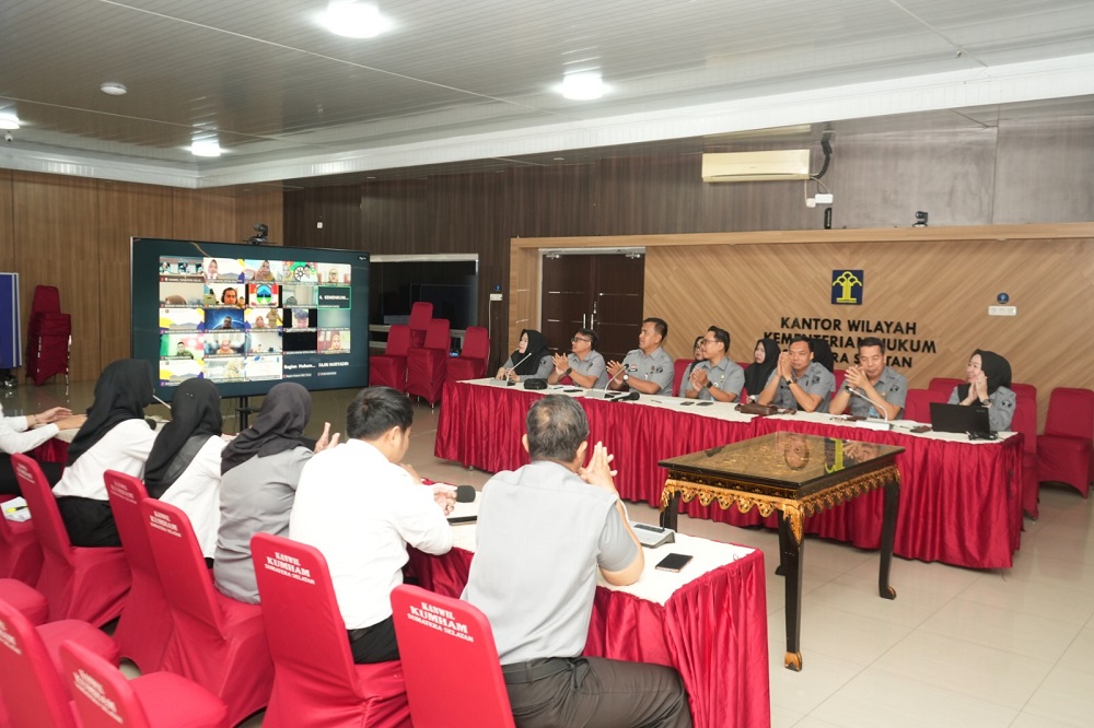 Kegiatan ini dilaksanakan secara virtual melalui Zoom Meeting yang dipusatkan di Aula Musi Kanwil Kemenkum Sumsel.