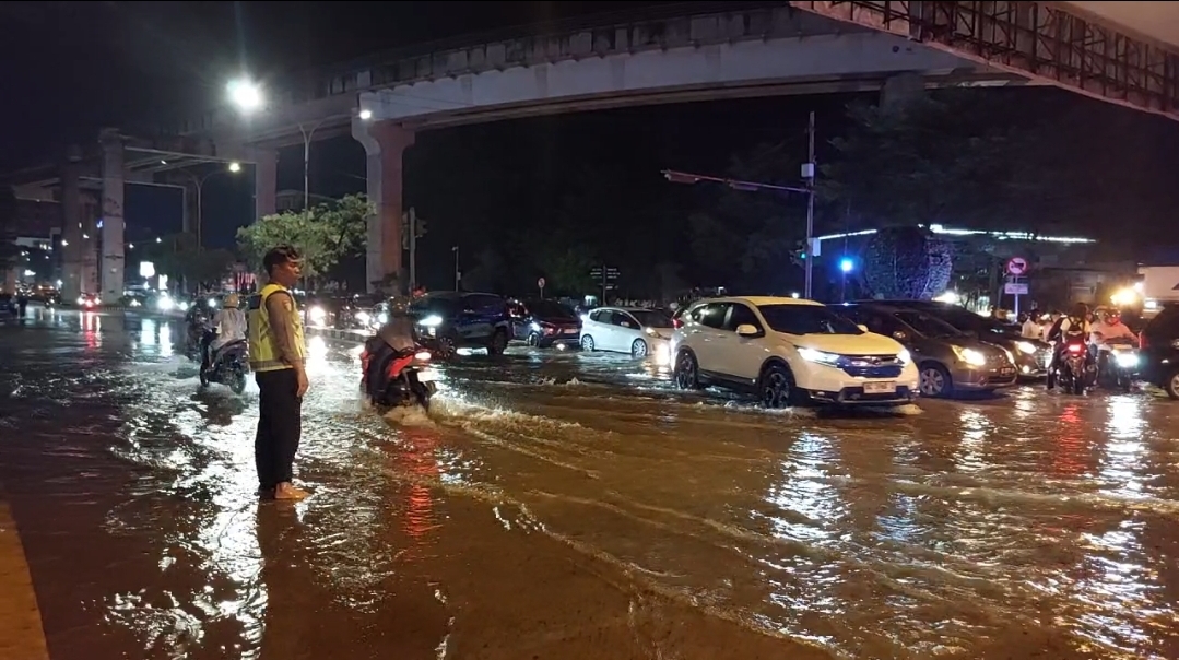 Di titik ini, ketinggian air dilaporkan cukup dalam hingga menyulitkan kendaraan untuk melintas. Banjir tersebut diduga kuat disebabkan oleh meluapnya kolam retensi yang berada di sekitar kawasan tersebut, yang tidak mampu lagi menampung volume air hujan yang terus meningkat.