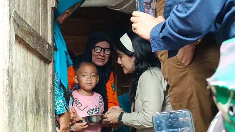 Wakil Menteri Kependudukan dan Pembangunan Keluarga/Wakil Kepala BKKBN Ratu Ayu Isyana Bagoes Oka memberikan MBG bagi balita.-Yansyah-PALTV