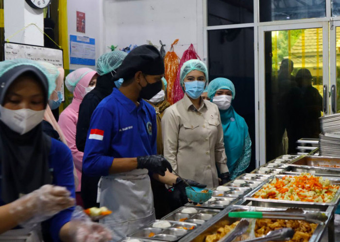 Dalam agenda kunjungan itu, Wamen Ratu Ayu Isyana Bagoes Oka bersama rombongan meninjau langsung proses pengolahan makanan di SPPG Polres Muara Enim II.