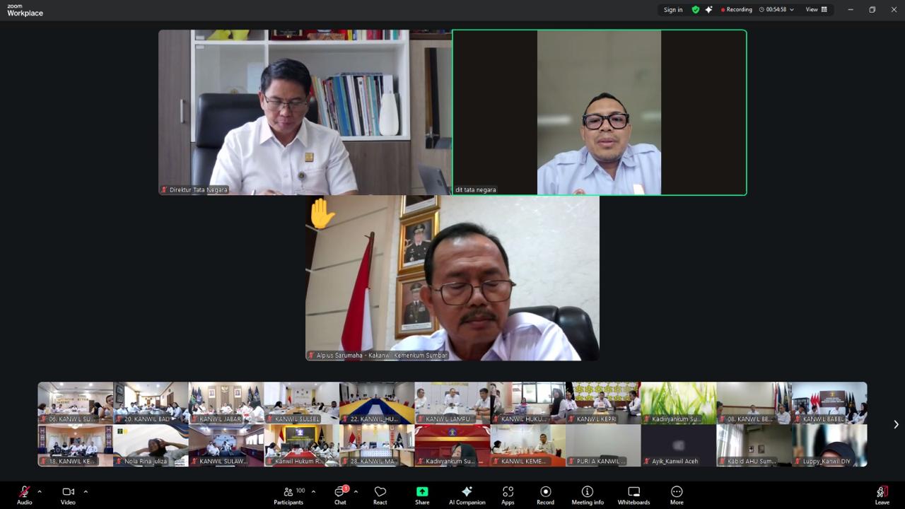 Rapat tersebut diikuti oleh Para Kepala Kantor Wilayah, Kepala Divisi Pelayanan Hukum, serta jajaran Bidang Administrasi Hukum Umum se-Indonesia.