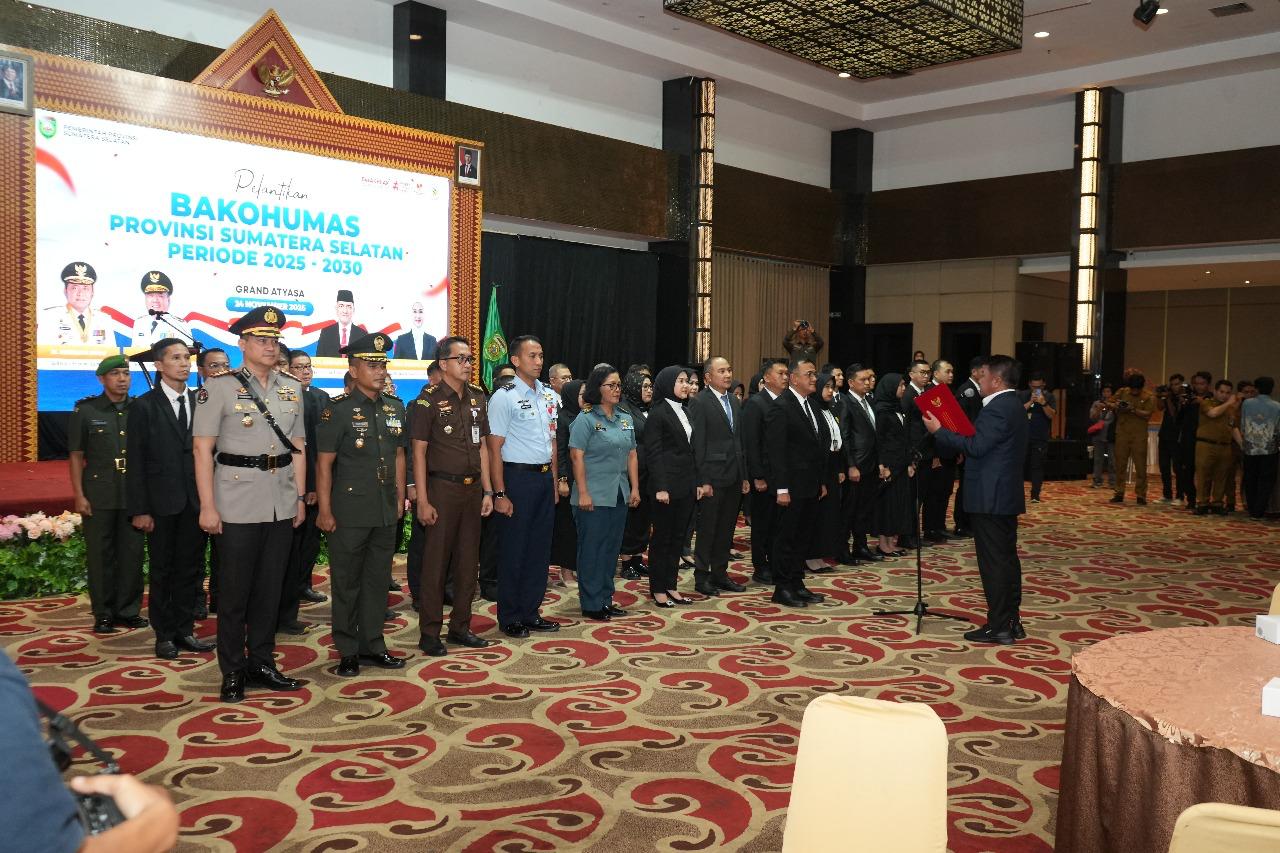 Pelantikan pengurus Bakohumas Provinsi Sumsel periode 2025–2030 dilakukan langsung oleh Gubernur Sumatera Selatan, Herman Deru, disaksikan oleh unsur Forkopimda, kepala daerah/OPD, TGUPP, instansi vertikal, Kepala Dinas Kominfo se-Sumatera Selatan, serta anggota Bakohumas dari berbagai lembaga.