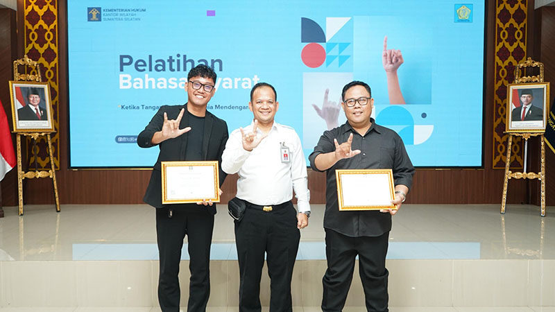 Dalam sambutannya, Kakanwil Kemenkum Sumsel menegaskan bahwa bahasa isyarat bukan hanya gerakan tangan, tetapi jembatan komunikasi dan simbol kesetaraan.