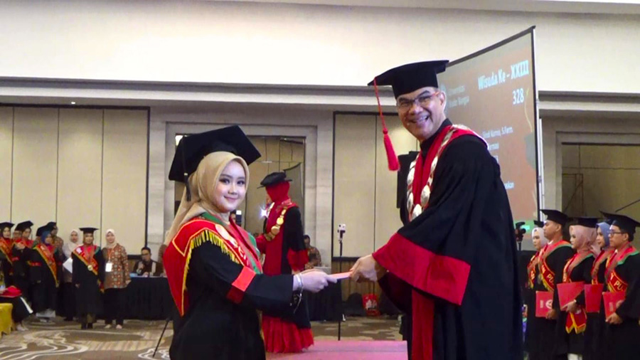 Kegiatan berlangsung di Hotel Wyndham OPI Mall di Jakabaring Kota Palembang dan dihadiri para pimpinan universitas, dosen, tamu undangan, serta keluarga wisudawan dan wisudawati.