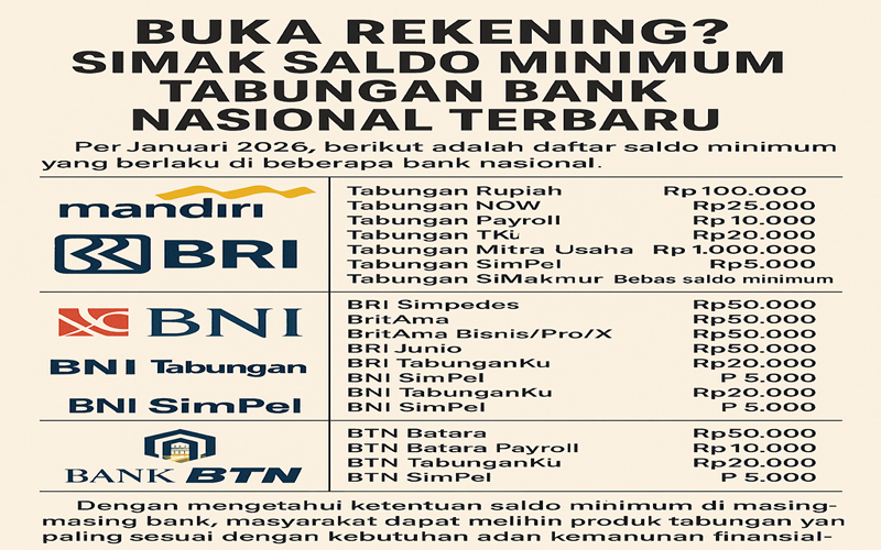 Buka Rekening? Simak Saldo Minimum Tabungan Bank Nasional Terbaru