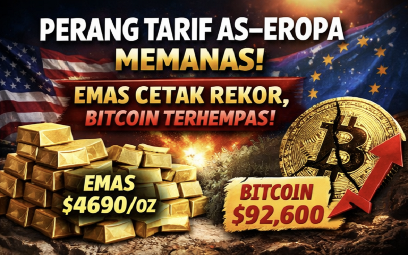 Perang Tarif AS–Eropa Meledak! Emas Cetak Rekor Fantastis, Bitcoin Justru Terguncang