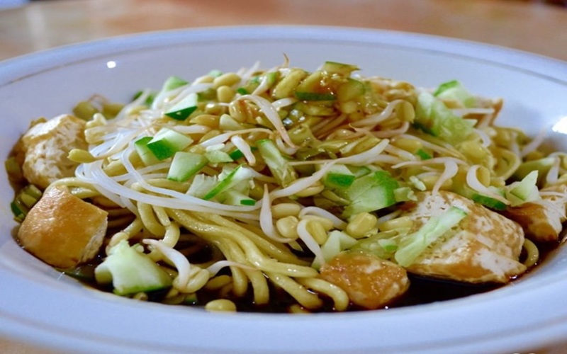 50 gram soun, diseduh air panas hingga lembut lalu tiriskan.