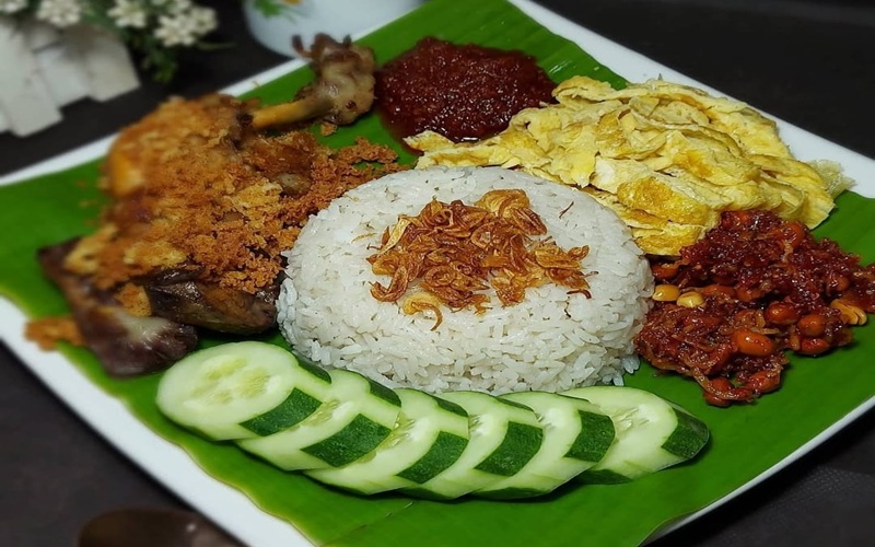 Sajian ini mirip dengan nasi uduk dari Jawa tetapi memiliki cita rasa tersendiri berkat penggunaan santan kental dan bumbu aromatik yang khas.