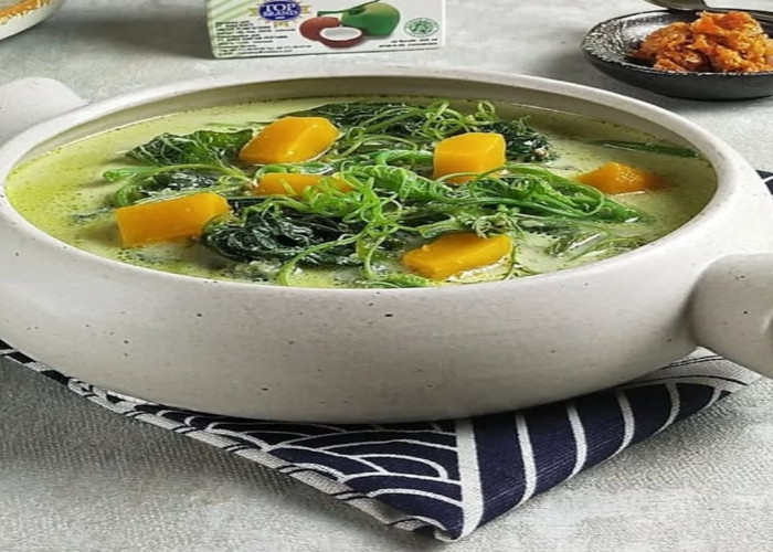 Sajian Santan Pucuk Labu menghadirkan cita rasa gurih, lembut, dan harum rempah yang menenangkan, sekaligus menggambarkan kehangatan dapur tradisional khas daerah tersebut.
