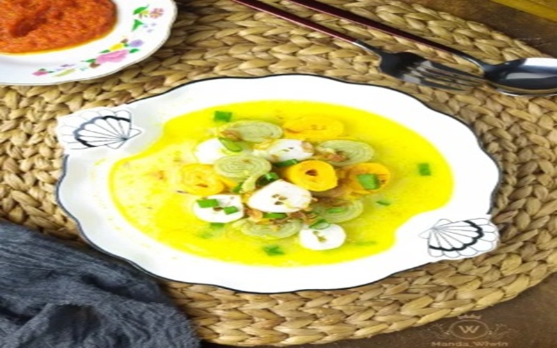 Taburan bawang goreng menjadi sentuhan akhir yang menambah aroma harum. Untuk memperkaya rasa, perasan jeruk limau sering ditambahkan agar memberikan kesegaran alami.