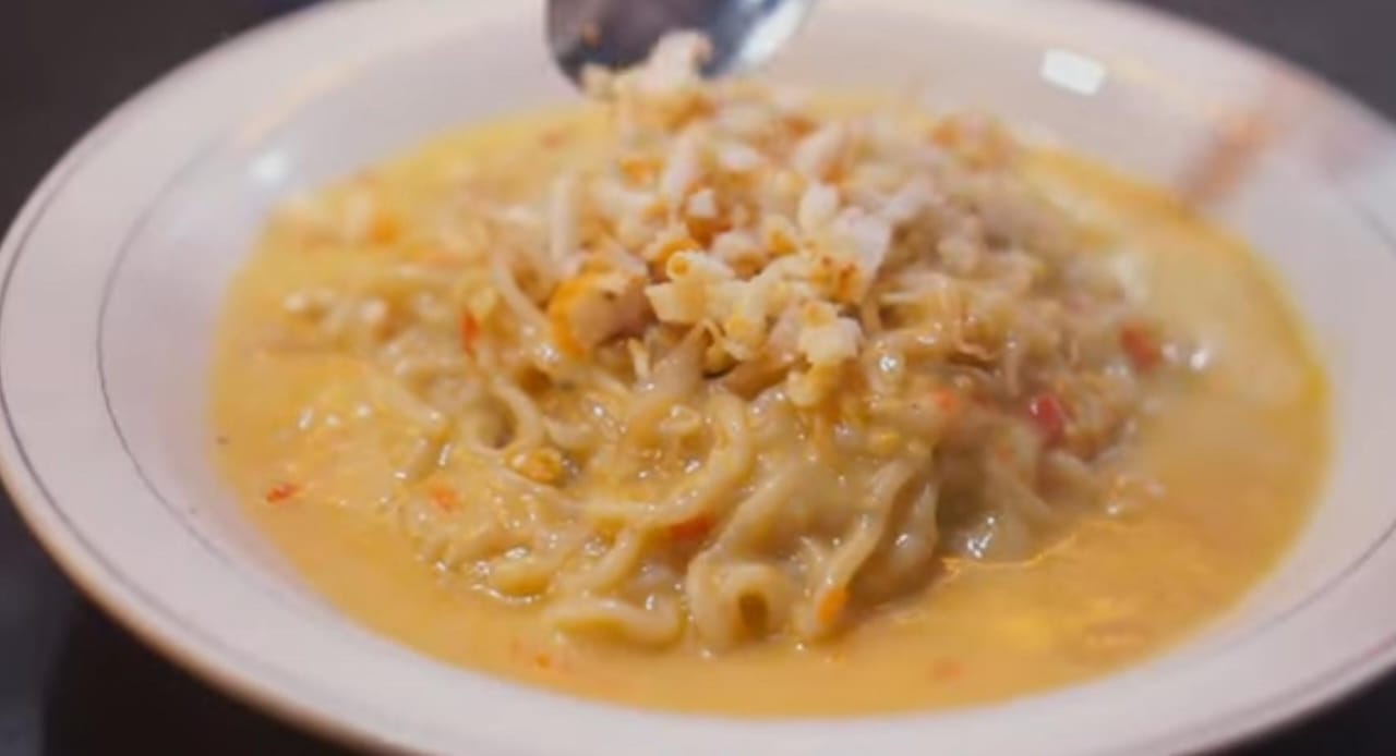 Penggunaan santan dan kocokan telur di dalam kuah memberikan tekstur creamy yang tidak ditemukan pada jenis mi rebus lainnya di Indonesia.