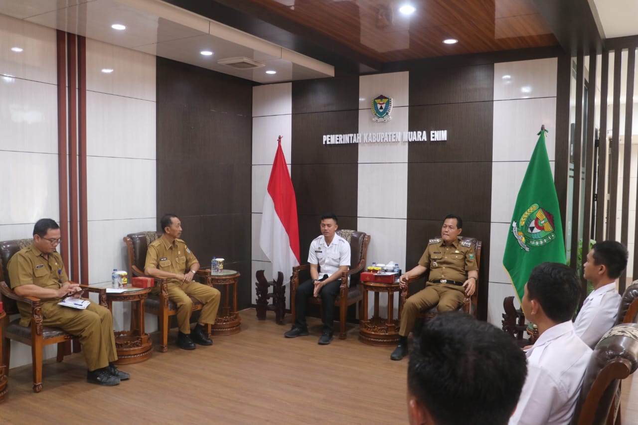 Bupati H Edisin menerima audiensi Koordinator Wilayah (Korwil) BGN Muara Enim Ian Rahadil Putra bersama Sarjana Penggerak Pembangunan Indonesia (SPPI) sebagai Kepala Satuan Pelayanan Pemenuhan Gizi (SPPG).-Mardiansyah-PALTV