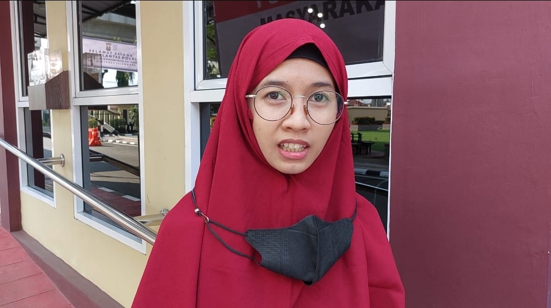 Nur saat membuat laporan di SPKT Polrestabes Palembang, Selasa (30/9/2025).--Foto : Suryadi - PALTV