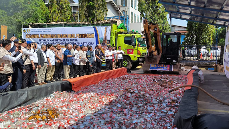 Pemusnahan 14 ribu liter minuman mengandung etil alkohol (MMEA) ilegal, Rabu (29/10/2025).-Mulyadi-PALTV