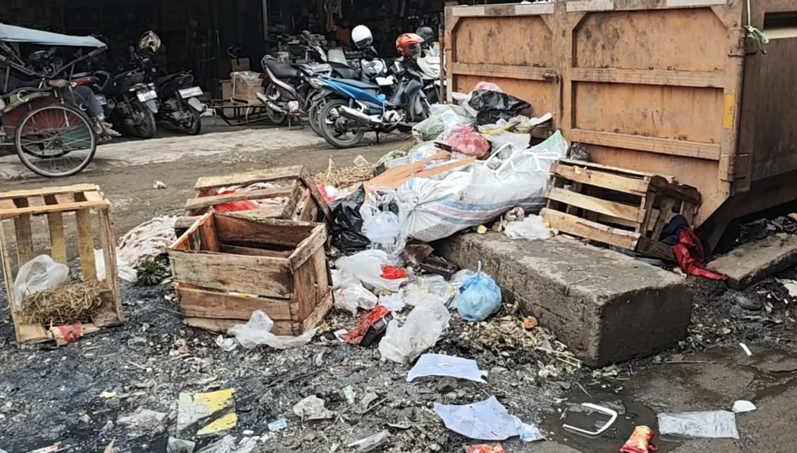 Akibatnya, semua sampah rumah tangga, sisa dagangan, hingga limbah pasar menumpuk di satu titik yang sama. “Pengangkutan sampah dilakukan oleh petugas dari Dinas Lingkungan Hidup setiap sore pukul 15.00, terkadang terlambat hingga pukul 18.00,” tambahnya.