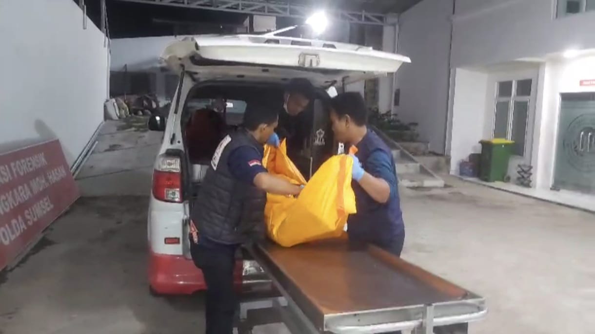 Jenazah Darma Kusuma dibawa ke RS Bhayangkara M. Hasan Palembang guna pemeriksaan lebih lanjut.-MulyadI-PALTV