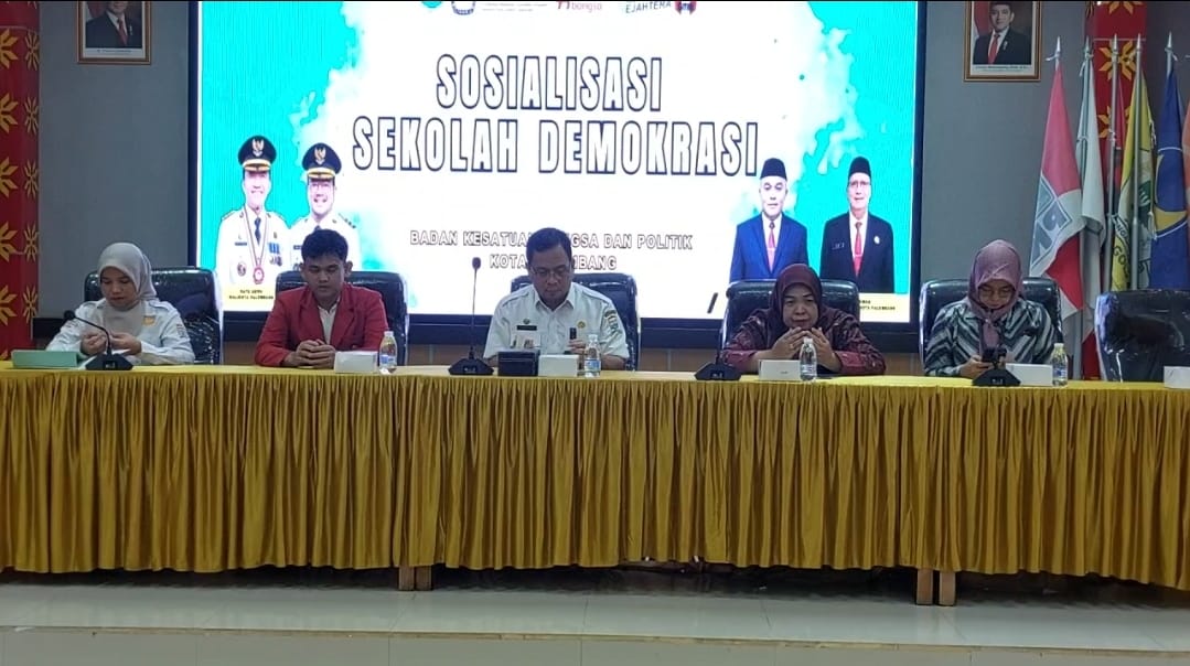 PALEMBANG, PALTV.CO.ID - Dalam rangka memperkuat pemahaman demokrasi serta membangun ruang dialog antara masyarakat, mahasiswa, dan pemerintah daerah, Badan Kesatuan Bangsa dan Politik (Kesbangpol) Kota Palembang, bersama Dewan Pimpinan Cabang Gerakan Mahasiswa Nasional Indonesia (DPC GMNI) Kota Palembang, menyelenggarakan Sosialisasi Sekolah Demokrasi serta Focus Group Discussion (FGD) Demokrasi 2025.