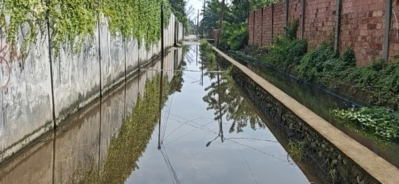 Saluran air yang juga dipenuhi genangan memperparah situasi karena air sulit mengalir keluar. Jum'at (05/12).