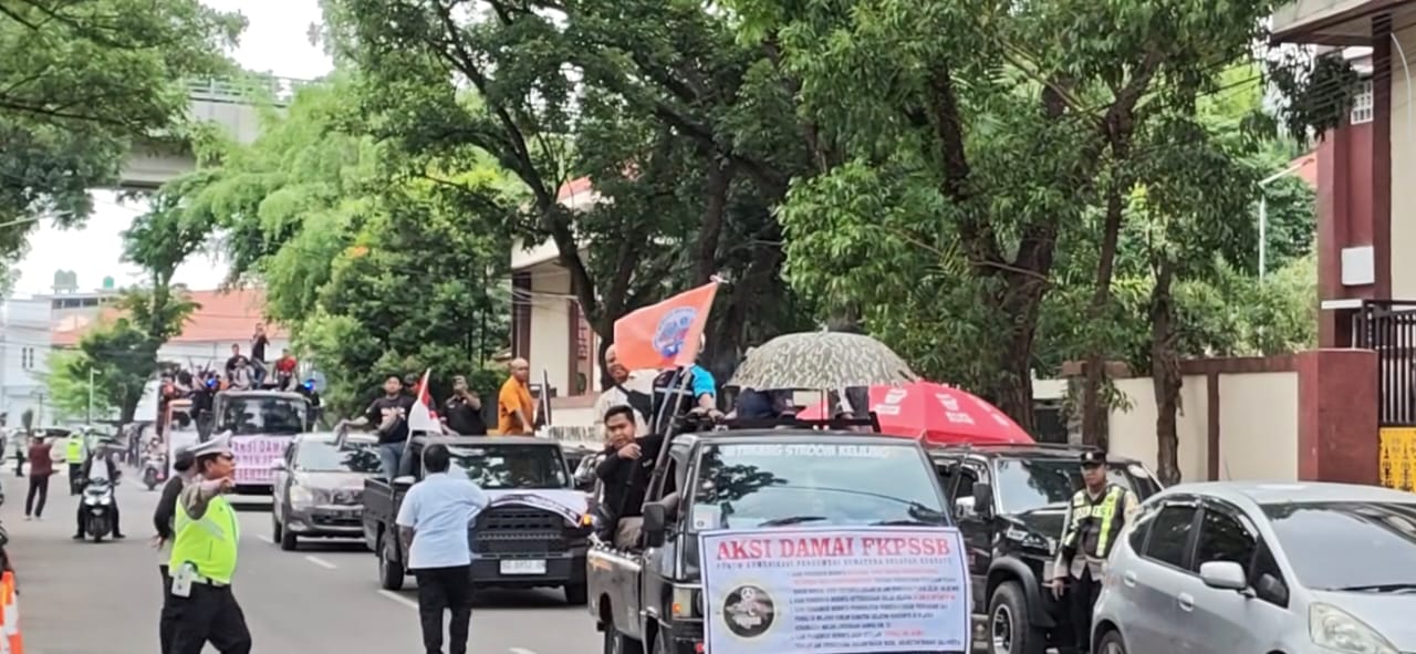 Mereka menggelar aksi demonstrasi di depan Kantor Gubernur Sumatera Selatan, membawa truk-truk mereka sebagai bentuk protes terhadap kebijakan pemerintah daerah yang dinilai merugikan pengemudi angkutan barang.