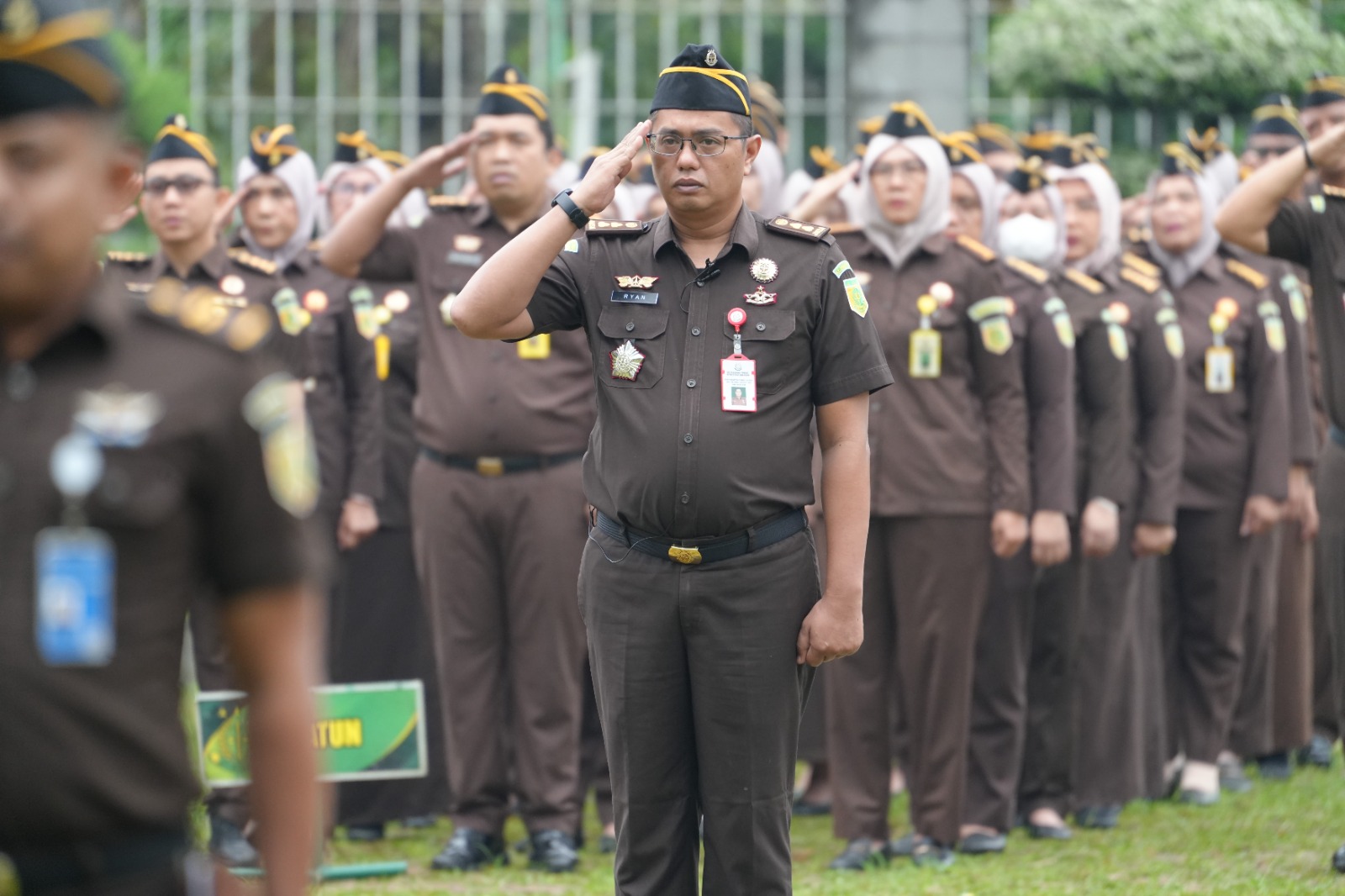 Seluruh jajaran Kejati Sumsel dan Kejaksaan Negeri Palembang turut hadir dalam upacara yang dipimpin langsung oleh Wakil Kepala Kejaksaan Tinggi (Wakajati) Sumsel, Anton Delianto.