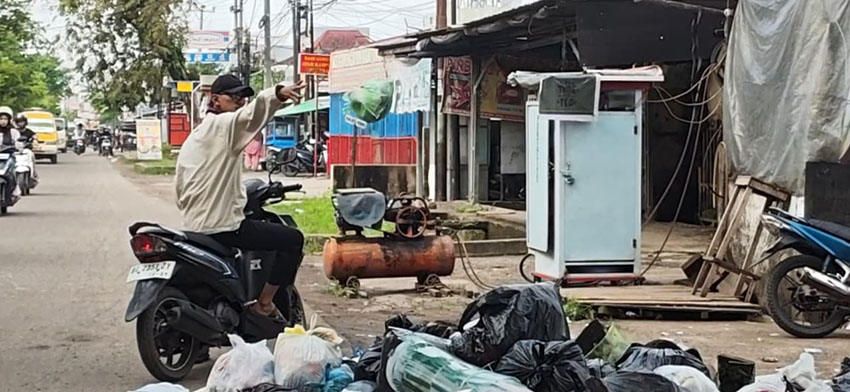 Sampah berserakan hingga ke Jalan KH Wahid Hasyim membuat resah warga Kelurahan 3-4 Ulu Kecamatan Seberang Ulu I Kota Palembang, Kamis (11/12/2025).-Aidil-PALTV