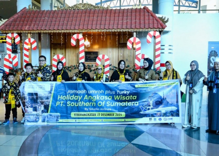PALTV.CO.ID,- Holiday Angkasa Wisata kembali memberangkatkan jamaah umroh paket plus Turki melalui Bandara Sultan Mahmud Badaruddin II Palembang, Senin (15/12/2025).