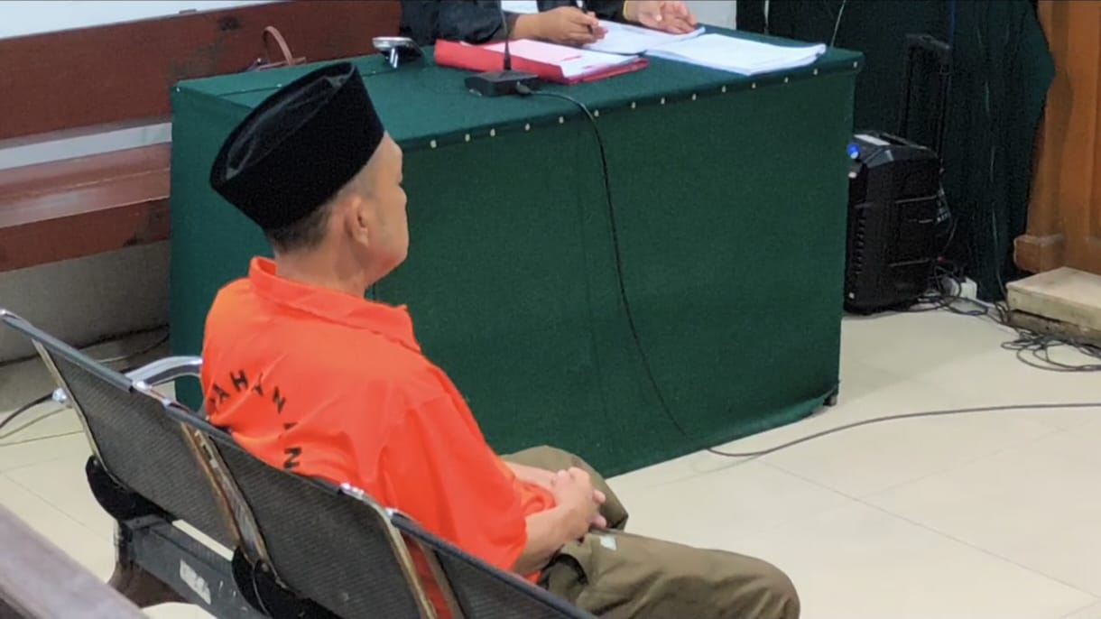 Haji Sutar saat mengikuti jalannya persidangan di hadapan majelis hakim.-Mulyadi-PALTV
