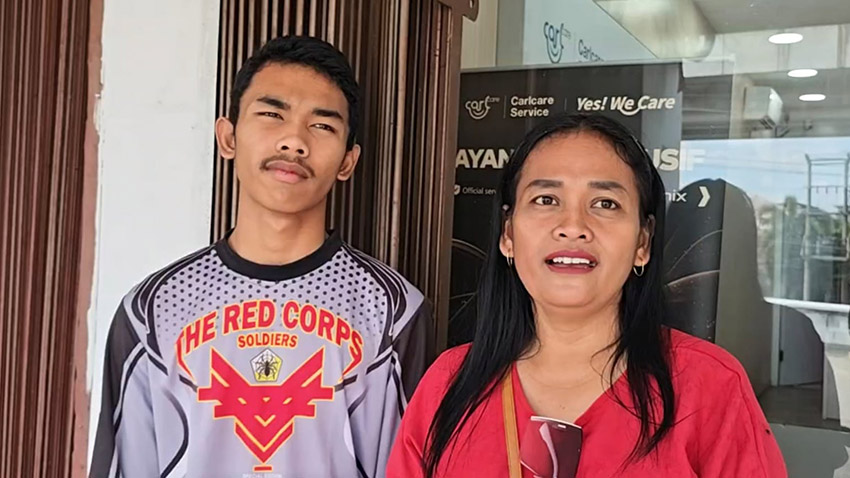 Nisa menemani anaknya, Stevan, saat registrasi dan pengambilan race pack PALTV Night Run Festival 2025, Selasa (16/12/2025).-Aidil-PALTV