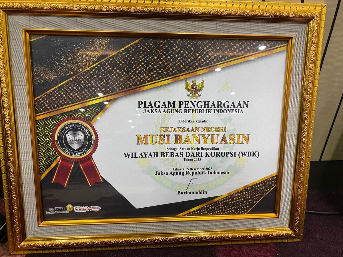 Jakarta, PALTV.CO.ID — Kejaksaan Negeri Musi Banyuasin (Kejari Muba) berhasil meraih Predikat Zona Integritas Menuju Wilayah Bebas dari Korupsi (WBK) Tahun 2025 dalam ajang Penganugerahan Zona Integritas dan Kompetisi BerAKHLAK di lingkungan Kejaksaan Republik Indonesia.