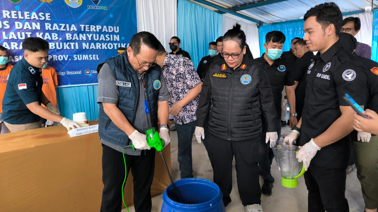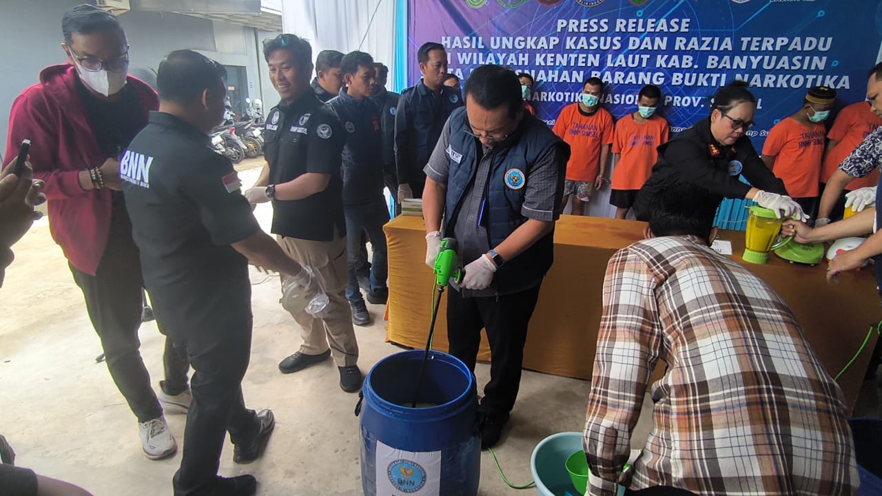 Pemusnahan dilakukan dengan cara menghancurkan seluruh barang bukti menggunakan blender yang dicampur cairan pembersih hingga larut.