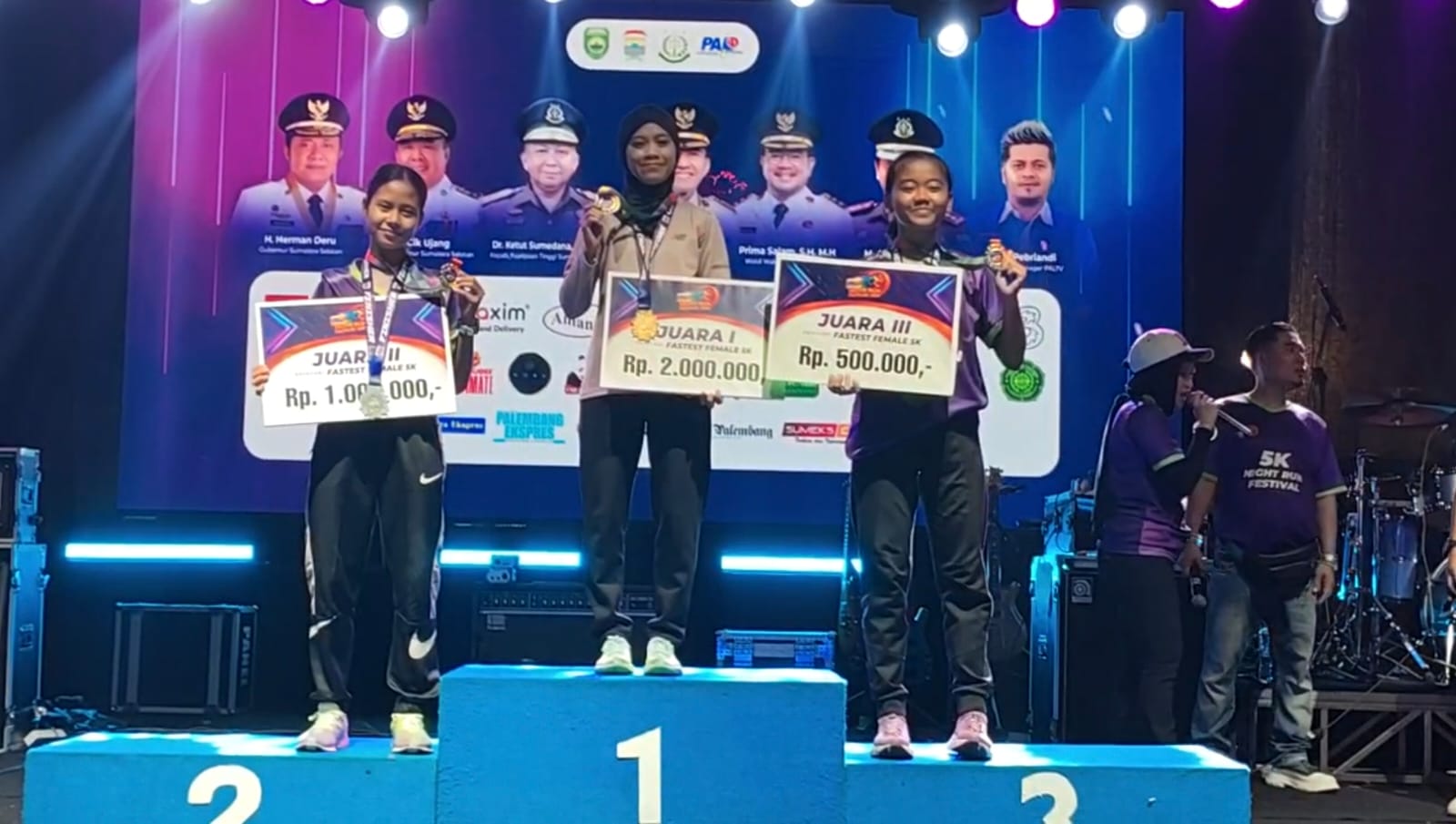 Sementara itu, juara pertama kategori putri diraih oleh Zella Melati dengan waktu tempuh 21 menit. Zella mengaku senang dapat naik podium tertinggi dalam ajang PALTV Night Run Festival 2025.