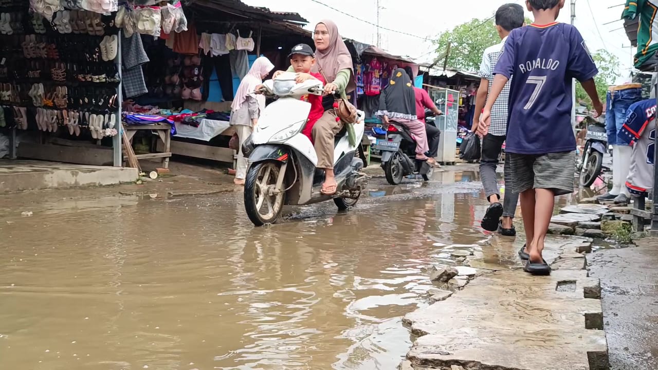 Pantauan di lokasi menunjukkan genangan air menutupi sebagian badan jalan di kawasan Pasar Plaju. Kondisi ini tidak hanya mengganggu akses kendaraan dan pejalan kaki, namun juga berdampak langsung pada aktivitas jual beli pedagang.