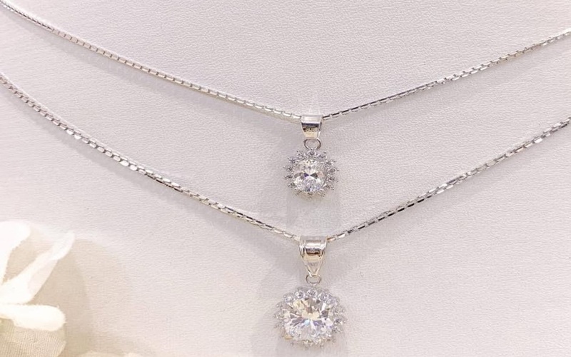 Warnanya yang netral membuat liontin emas putih mudah dipadukan dengan berbagai warna pakaian, baik busana kasual maupun formal.