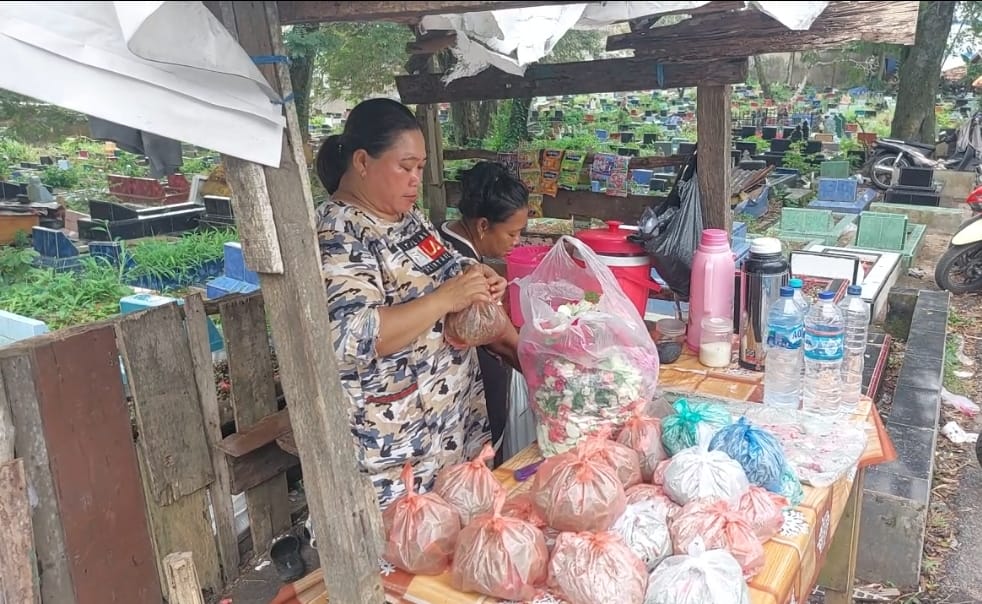 TPU Puncak Sekuning Mulai Ramai Peziarah, Penjualan Bunga Belum Stabil--Foto : Suryadi - PALTV