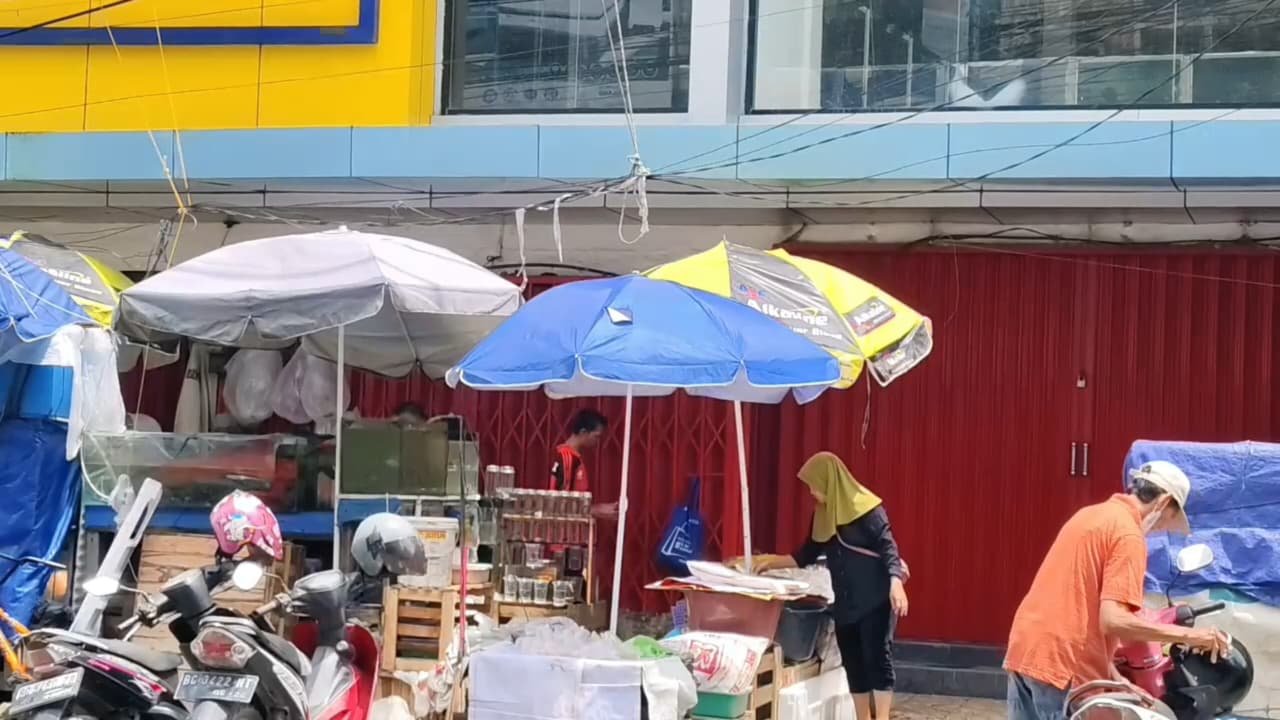 Sejumlah toko terlihat sudah menutup usahanya lebih awal, sementara sebagian pedagang lainnya masih beroperasi.
