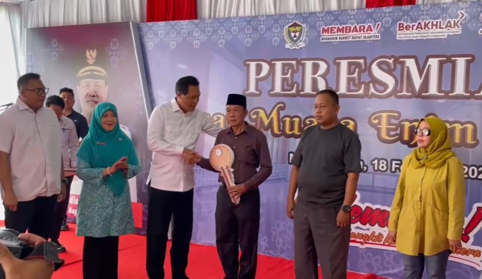 Bupati Muara Enim H Edison menyerahkan kunci kios secara simbolis kepada pedagang gedung c. --Foto : Mardiansyah - PALTV