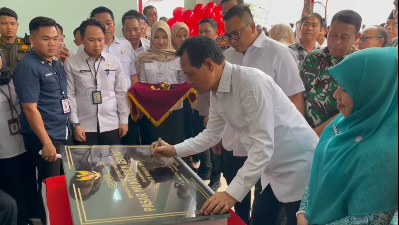 Bupati Muara Enim H Edison menandatangani prasasti peresmian pasar. --Foto : Mardiansyah - PALTV
