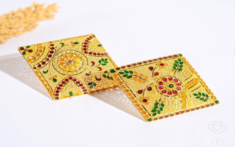 Umumnya, cincin ini menggunakan emas 22 karat atau bahkan mendekati 24 karat, sehingga menghasilkan warna kuning pekat yang tampak lebih mencolok dibandingkan emas 18 karat.