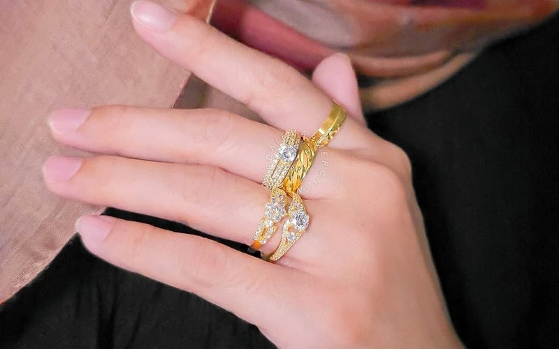Biasanya cincin yang digunakan memiliki desain lebih tipis sehingga nyaman dipakai secara bersamaan.--ig@kedai_emas.merchant