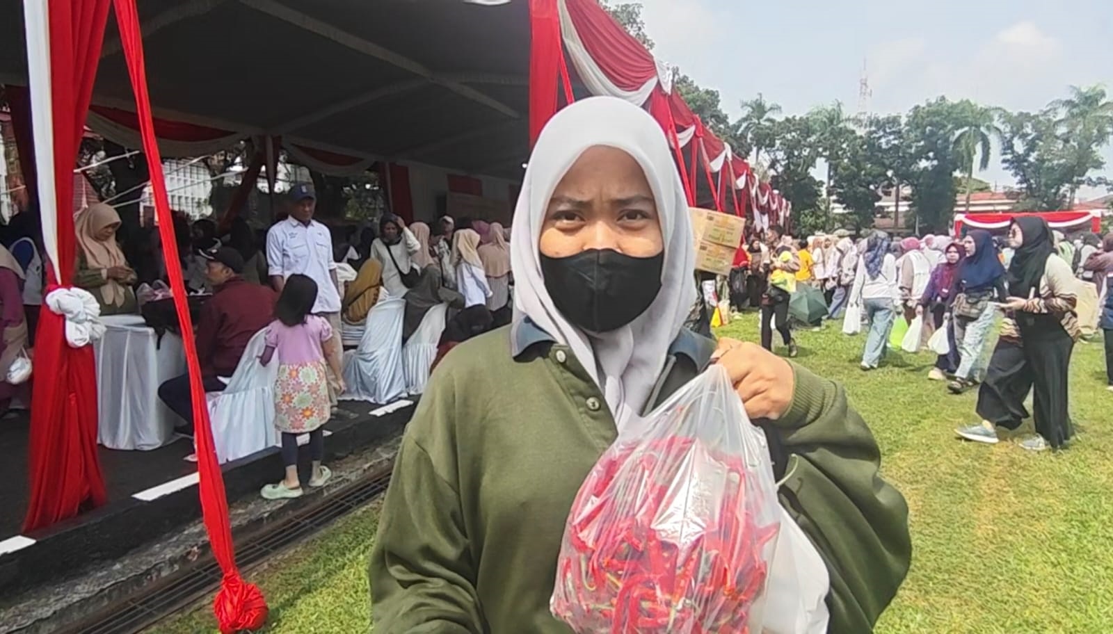 Sejak pagi hari, warga sudah mengantre panjang untuk mendapatkan bahan pokok yang dijual dalam pasar murah tersebut. Sejumlah komoditas yang paling banyak diburu di antaranya cabai merah keriting, telur ayam ras, serta beras program Stabilisasi Pasokan dan Harga Pangan (SPHP).