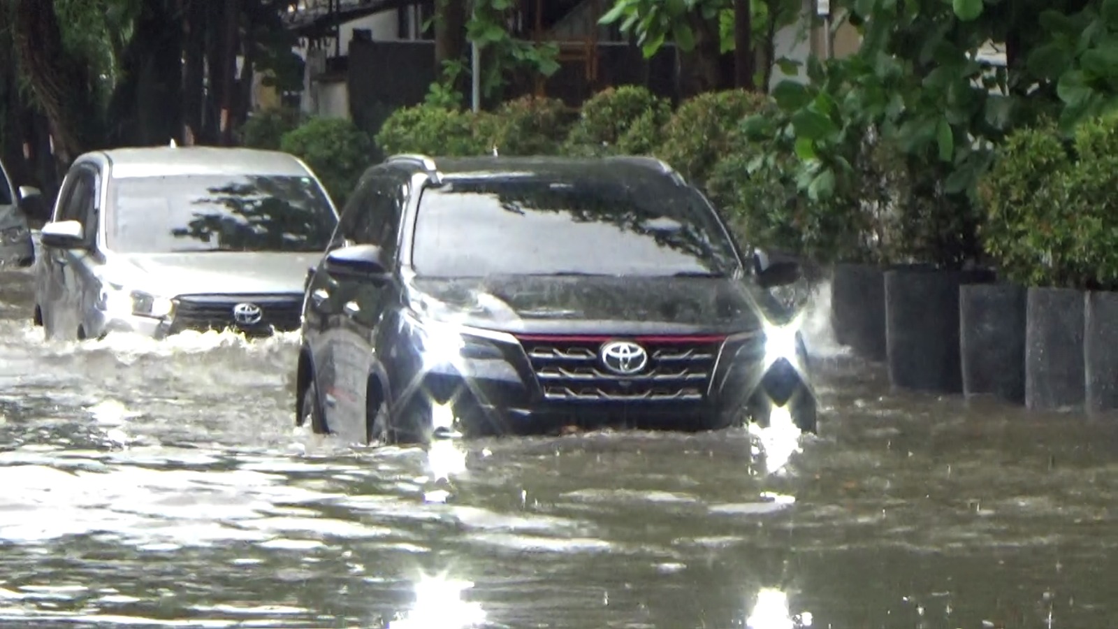 Berdasarkan pantauan di lapangan, hujan dengan intensitas tinggi yang turun sejak siang hari membuat beberapa ruas jalan tidak mampu menampung debit air.