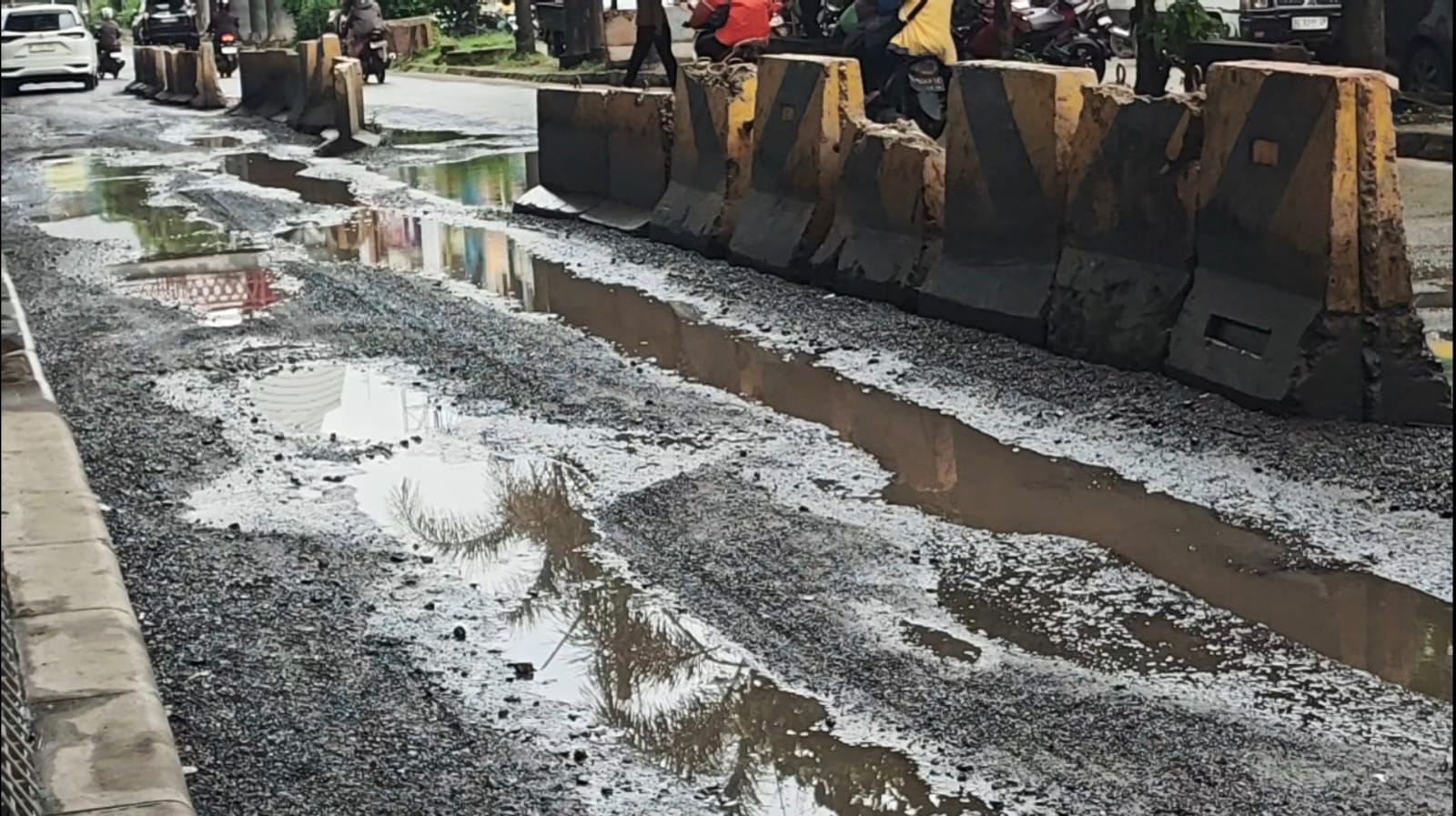 Pantauan di lokasi menunjukkan permukaan jalan berlubang, bergelombang, serta dipenuhi genangan air yang tidak kunjung surut. Kondisi tersebut dinilai membahayakan pengendara, terutama saat arus lalu lintas padat karena lubang jalan tertutup air.